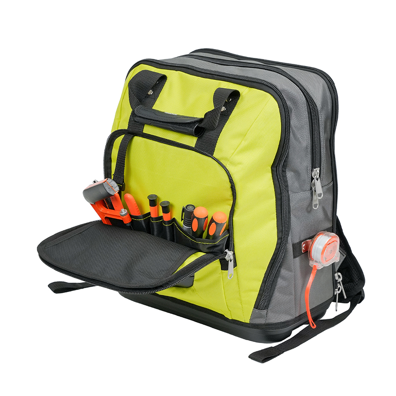 Page d'accueil / Produits / Sac à dos à outils / Sac à dos à outils avec base moulée / Sac à dos multifonctionnel renforcé avec fond en plastique de 14 pouces pour outils