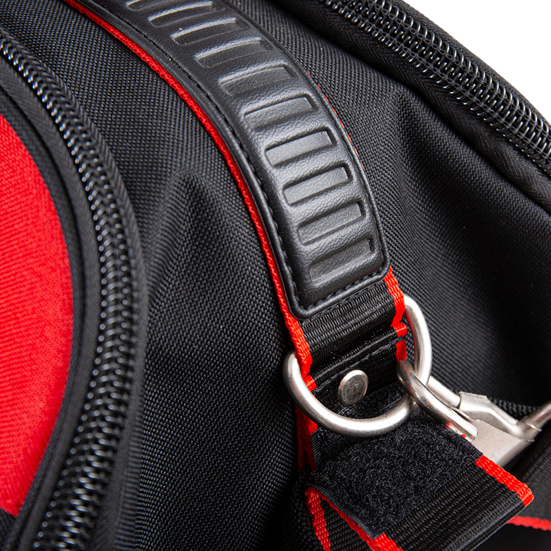 L'intérieur est stratégiquement divisé en fonction de l'ergonomie et des habitudes d'utilisation des outils, offrant un système de rangement multicouche et des poches pour des outils tels que des tournevis, des pinces, des crayons électriques et des perceuses électriques, garantissant qu'ils disposent tous de leur propre espace de rangement spécifique. Les poches extérieures pratiques pour petits outils s'adaptent à une utilisation fréquente, vous aidant à travailler efficacement, à gagner du temps et à améliorer l'efficacité du travail. Doté de coutures fines, d'une fermeture éclair robuste et de poignées élargies, il offre confort et durabilité, résistant aux fissures et aux déformations même sous de lourdes charges. Son élégante combinaison de couleurs noir et rouge incarne l'esprit d'artisanat, ce qui la rend adaptée à une utilisation sur les chantiers de construction, les usines et les magasins.