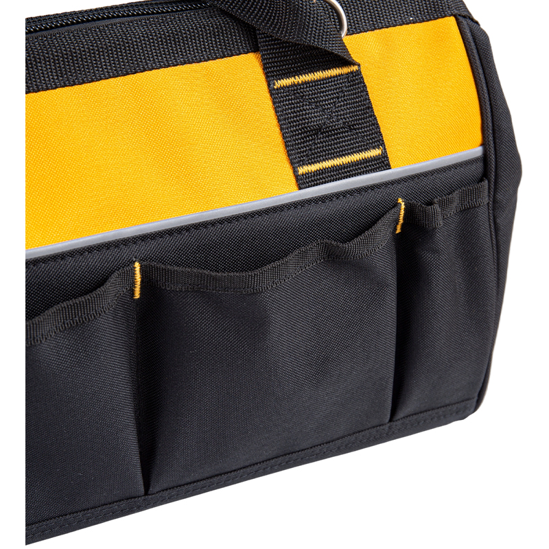 Le sac à outils ouvert de 12 pouces/16 pouces est largement utilisé dans divers environnements de travail professionnels, tels que les réparations électriques, l'entretien d'urgence, les inspections sur place et les inspections quotidiennes. Fabriqué en tissu Oxford imperméable robuste 600D/1200D, solide et durable, il présente une excellente résistance à la déchirure, à l'eau et à l'usure et peut facilement faire face à divers environnements de travail complexes et difficiles. Sa conception ouverte et sa structure à grande ouverture facilitent l’identification et l’accès rapide aux outils, améliorant considérablement l’efficacité du travail sur site. L'intérieur est équipé de poches multi-spécifications, de bandes élastiques et de compartiments raisonnables, qui vous permettent de ranger efficacement les outils couramment utilisés tels que les pinces d'électricien, les tournevis et les testeurs d'électricien. Le fond adopte une conception antidérapante renforcée, avec une poignée robuste et des coutures robustes, qui peuvent rester stables et fiables même lorsqu'elles sont entièrement chargées. Que vous soyez un technicien professionnel ou une équipe de travail sur site, ce sac à outils est une solution de stockage d'outils portable et durable idéale.