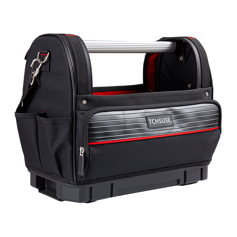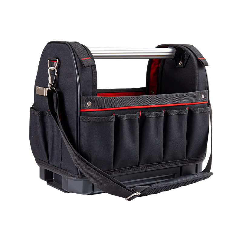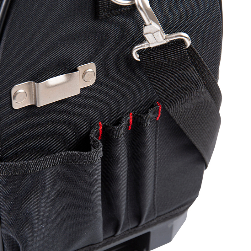 Le sac à outils avec une structure en acier et une base en plastique possède un cadre tubulaire en acier robuste qui lui confère une structure stable et résistante à la déformation. Sa base en plastique robuste offre une excellente imperméabilité, une protection contre la poussière et une résistance aux chocs. Son extérieur est en tissu Oxford renforcé 600D ou 600D 1200D, ce qui le rend adapté à une utilisation fréquente. Équipé d'une bandoulière amovible et d'une poignée renforcée, il est idéal pour une utilisation dans une grande variété de situations, notamment les techniciens de réparation, les ouvriers du bâtiment et l'entretien des propriétés. Disponible en tailles de 17, 18 et 19 pouces, il répond aux besoins de stockage de divers outils de travail, alliant durabilité et portabilité.
